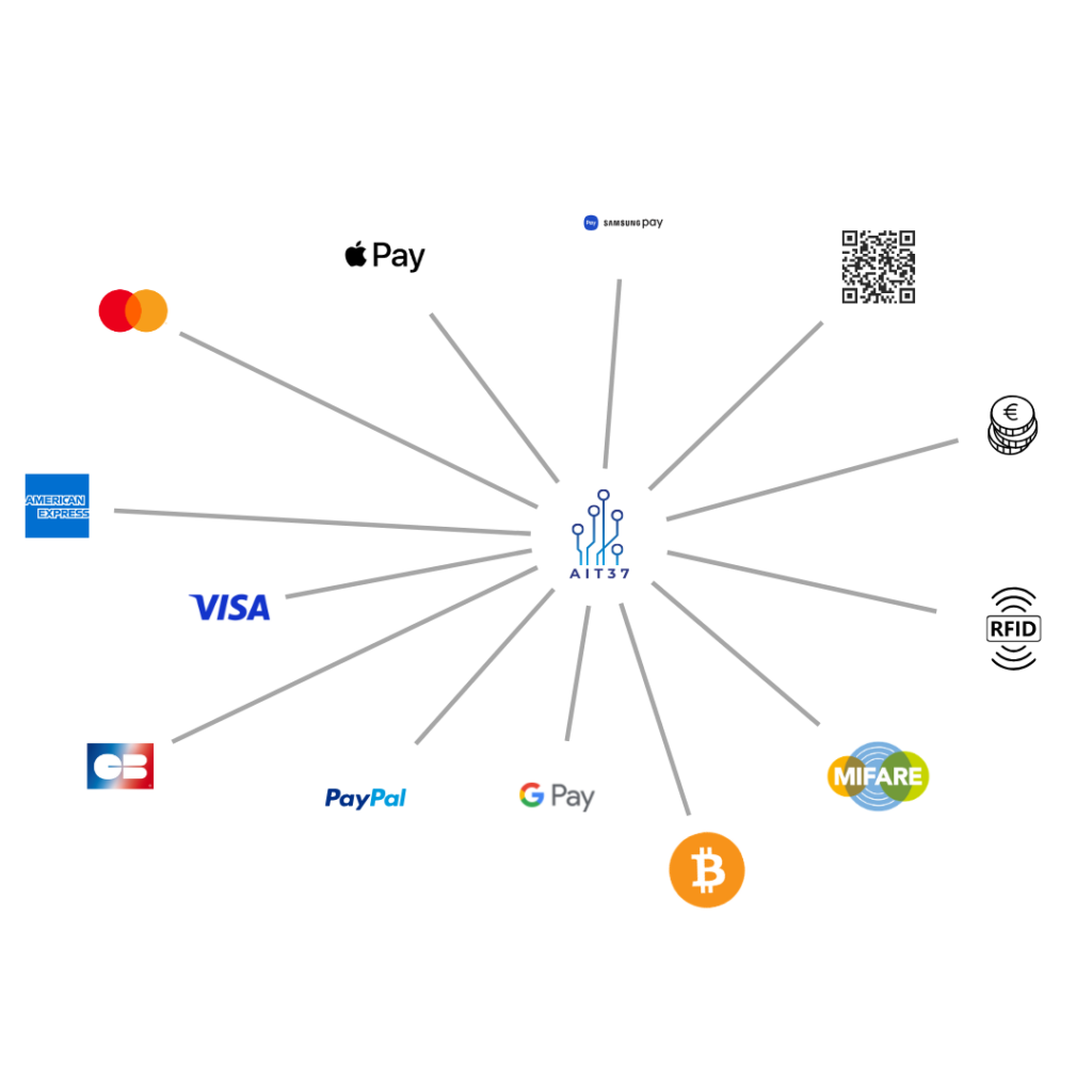 Le distributeur s’adapte à vous et vos besoins. Cela passe aussi par le moyen de paiement ! Pour faciliter l’achat et offrir une expérience simple et rapide, plusieurs solutions de paiement peuvent être intégrées :